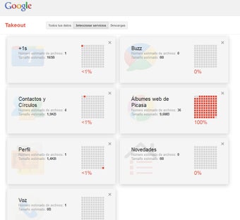 Entre los datos que Google Takeout te ofrece descargar están tus álbumes de Picasa, tus contactos y círculos de Gmail y Google+, las páginas a las que has hecho +1, tus conversaciones grabadas con Google Voice y tus publicaciones de Google Buzz.